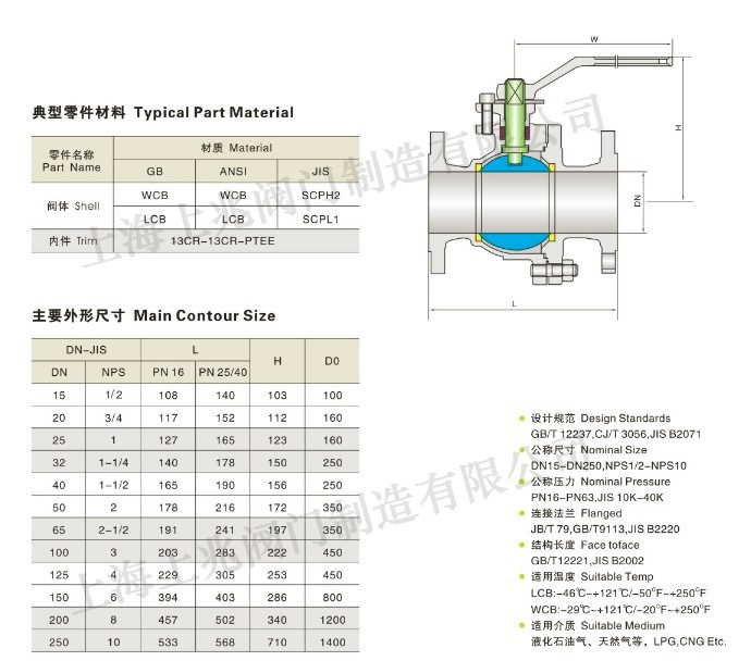 Q41N/F天然氣球閥--主要性能參數(shù):