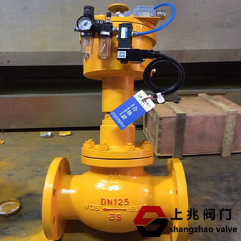 切斷閥總稱(chēng)緊急切斷閥 Emergency cut-off valve,屬于安防設(shè)備裝置,安裝在液氨,燃?xì)?,油?kù),槽罐,球罐,氨站,加氣站,液化氣站,食品制冷、裝卸車(chē)系統(tǒng)或管道及機(jī)械設(shè)備,應(yīng)急情況下,能遠(yuǎn)程控制或自動(dòng)(SIS安全儀表系統(tǒng)/DCS控制中心/氣體泄漏報(bào)警器/消防系統(tǒng)聯(lián)動(dòng) )快速關(guān)閉的閥門(mén) 。 切斷閥型號(hào)編制 The cut-off valve model establishment 切斷閥型號(hào)編制及傳動(dòng)形式代號(hào): 液動(dòng)型代號(hào):Y,QDY421F-25C液動(dòng)緊急切斷閥 Hydraulic Emergency shut off valve 氣動(dòng)型代號(hào):Q,QDQ421F-25P 氣動(dòng)緊急切斷閥 Pneumatic Emergency shut off valve 電動(dòng)型代號(hào):B,ABQ941F-40R電動(dòng)緊急切斷閥 The electric emergency cut-off valve 電子型代號(hào):R,ZCRB-16C燃?xì)饩o急切斷閥 Gas emergency shut-off valve 液氨/氨用/氨氣-氣動(dòng)型代號(hào):QDQ641F-25C氨用緊急切斷閥 Ammonia with emergency cut-off valve 液氨/氨用/氨氣-電動(dòng)型代號(hào):YL-AOX-M/941液氨緊急切斷閥 Liquid ammonia Emergency shut off valve 閥體材質(zhì)表示:C代號(hào):WCB碳鋼,P代號(hào):CF8/304不銹鋼,R代號(hào):CF8M/316不銹鋼 切斷閥Cut-off valve以電動(dòng),氣動(dòng),液動(dòng),電子式(燃?xì)獾蛪航橘|(zhì))控制方式,氣動(dòng)切斷閥 Pneumatic cut-off valve與液動(dòng)切斷閥 Hydraulic cut-off valve執(zhí)行機(jī)構(gòu)需帶易熔元件自動(dòng)切斷裝置 Auto-shutoff equipment of fusible element,當(dāng)環(huán)境溫度超過(guò)緊急切斷閥設(shè)置熔點(diǎn),能使閥門(mén)自動(dòng)快速關(guān)閉切斷介質(zhì)流通的作用。