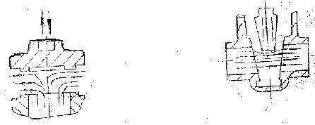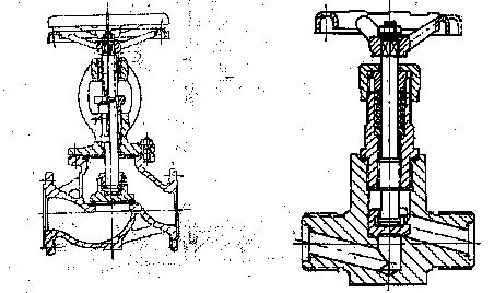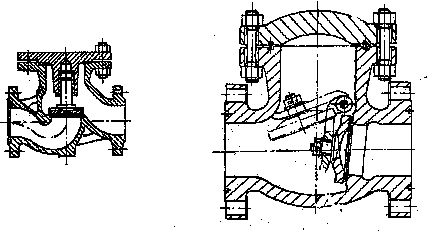 注:PN≤1.0MPa的灰鑄鐵閥體和PN≥2.5MPa的碳素鋼閥體,省略本代號。 第二章 閥門的類型和用途 閥門類型繁多,本文只介紹常用閥門 第一節(jié) 閘 閥 閘閥是指關閉件(閘板)沿通路中心線的垂直方向移動的閥門。 閘閥在管路中主要作切斷用。 閘閥是使用很廣的一種閥門,一般口徑DN≥50mm的切斷裝置都選用它,有時口徑 很小的切斷裝置也選用閘閥,閘閥有以下優(yōu)點: ①流體阻力小。 ②開閉所需外力較小。 ③介質(zhì)的流向不受限制。 ④全開時,密封面受工作介質(zhì)的沖蝕比截止閥小。 ⑤體形比較簡單,鑄造工藝性較好。 閘閥也有不足之處: ①外形尺寸和開啟高度都較大。安裝所需空間較大。 ②開閉過程中,密封面間有相對摩擦,容易引起擦傷現(xiàn)象。 ③閘閥一般都有兩個密封面,給加工、研磨和維修增加一些困難。 一、閘閥的種類 1. 按閘板的構造可分 1)平行式閘閥:密封面與垂直中心線平行,即兩個密封面互相平行的閘閥。如圖2—12所示。 ![]() 在平行式閘閥中,以帶推力楔塊的結(jié)構最常為常見,既在兩閘板中間有雙面推力楔塊,這種閘閥適用于低壓中小口徑(DN40—300mm)閘閥。也有在兩閘板間帶有彈簧的,彈簧能產(chǎn)生予緊力,有利于閘板的密封。 2)楔式閘閥:密封面與垂直中心線成某種角度,即兩個密封面成楔形的閘閥如圖2—13所示。 密封面的傾斜角度一般有2°52′,3°30′,5°, 8°, 10°等,角度的大小主要取決于介質(zhì)溫度的高低。一般工作溫度愈高,所取角度應愈大,以減小溫度變化時發(fā)生楔住的可能性。 在楔式閘閥中,又有單閘板,雙閘板和彈性閘板之分。單閘板楔式閘閥,結(jié)構簡單,使用可靠,但對密封面角度的精度要求較高,加工和維修較困難,溫度變化時楔住的可能性很大。雙閘板楔式閘閥在水和蒸氣介質(zhì)管路中使用較多。它的優(yōu)點是:對密封面角度的精度要求較低,溫度變化不易引起楔住的現(xiàn)象,密封面磨損時,可以加墊片補償。但這種結(jié)構零件較多,在粘性介質(zhì)中易粘結(jié),影響密封。更主要是上、下?lián)醢彘L期使用易產(chǎn)生銹蝕,閘板容易脫落。彈性閘板楔式閘閥,它具有單閘板楔式閘閥結(jié)構簡單,使用可靠的優(yōu)點,又能產(chǎn)生微量的彈性變形彌補密封面角度加工過程中產(chǎn)生的偏差,改善工藝性,現(xiàn)已被大量采用。 2. 按閥桿的構造閘閥又可分為 1) 明桿閘閥:閥桿螺母在閥蓋或支架上,開閉閘板時,用旋轉(zhuǎn)閥桿螺母來實現(xiàn)閥桿的升降。如圖2—12所示。這種結(jié)構對閥桿的潤滑有利,開閉程度明顯,因此被廣泛采用。 2) 暗桿閘閥:閥桿螺母在閥體內(nèi),與介質(zhì)直接接觸。開閉閘板時,用旋轉(zhuǎn)閥桿來實現(xiàn)。如圖2—14所示。這種結(jié)構的優(yōu)點是:閘閥的高度總保持不變,因此安裝空間小,適用于大口徑或?qū)Π惭b空間受限制的閘閥。此種結(jié)構要裝有開閉指示器,以指示開閉程度。這種結(jié)構的缺點是:閥桿螺紋不僅無法潤滑,而且直接接受介質(zhì)侵蝕,容易損壞。 ![]() 二、閘閥的通徑收縮 如果一個閥體內(nèi)的通道直徑不一樣(往往都是閥座處的通徑小于法蘭連接處的通徑),稱為通徑收縮。如圖2—15所示。 通徑收縮能使零件尺寸縮小,開、閉所需力相應減小,同時可擴大零部件的應用范圍。但通徑收縮后。流體阻力損失增大。 在某些部門的某些工作條件下(如石油部門的輸油管線),不允許采用通徑收縮的閥門。這一方面是為了減小管線的阻力損失,另一方面是為了避免通徑收縮后給機械清掃管線造成障礙。 第二節(jié) 截止閥 截止閥是關閉件(閥瓣)沿閥座中心線移動的閥門。 截止閥在管路中主要作切斷用。截止閥有以下優(yōu)點: 1. 在開閉過程中密封面的摩擦力比閘閥小,耐磨。 2. 開啟高度小。 3. 通常只有一個密封面,制造工藝好,便于維修。 截止閥使用較為普遍,但由于開閉力矩較大,結(jié)構長度較長,一般公稱通徑都限制在DN≤200mm以下。截止閥的流體阻力損失較大。因而限制了截止閥更廣泛的使用。 截止閥的種類很多,根據(jù)閥桿上螺紋的位置可分: 一、上螺紋閥桿截止閥 截止閥閥桿的螺紋在閥體的外面。其優(yōu)點是閥桿不受介質(zhì)侵蝕,便于潤滑,此種結(jié)構采用比較普遍。如圖 2—8所示。 二、下螺紋閥桿截止閥 截止閥閥桿的螺紋在閥體內(nèi)。這種結(jié)構閥桿螺紋與介質(zhì)直接接觸,易受侵蝕,并無法潤滑。此種結(jié)構用于小口徑和溫度不高的地方。如圖 2—9所示。 ![]() 根據(jù)截止閥的通道方向,又可分為;直通式截止閥,角式截止閥和三通式截止閥,后兩種截止閥通常做改變介質(zhì)流向和分配介質(zhì)用。 第三節(jié) 節(jié)流閥 節(jié)流閥是指通過改變通道面積達到控制或調(diào)節(jié)介質(zhì)流量與壓力的閥門。 節(jié)流閥在管路中主要作節(jié)流使用。 最常見的節(jié)流閥是采用截止閥改變閥瓣形狀后作節(jié)流用。但用改變截止閥或閘閥開啟高度來作節(jié)流用是極不合適的,因為介質(zhì)在節(jié)流狀態(tài)下流速很高,必然會使密封面沖蝕磨損,失去切斷密封作用。同樣用節(jié)流閥作切斷裝置也是不合適的。 常見的節(jié)流閥如圖 2 —10所示。 ![]() 節(jié)流閥的閥瓣有多種形狀,常見的有: 1. 鉤形閥瓣,常用于深冷裝置中的膨脹閥。如圖 2—11a所示。 2. 窗形閥瓣,適用于口徑較