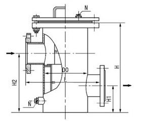 SRBB 高低平底籃式過濾器主要由擋管、筒體、濾籃、法蘭、法蘭蓋及緊固件組成。當(dāng)流體通過筒體進(jìn)入濾籃后,固體雜質(zhì)顆粒被阻擋在濾籃內(nèi),而潔凈的流體通過濾籃過濾由過濾器出口排出。當(dāng)需要清洗時(shí),旋開筒體底部螺塞排除流體,拆卸法蘭蓋,取出濾籃,清洗后重新放入即可。 二、高低平底籃式過濾器--主要尺寸