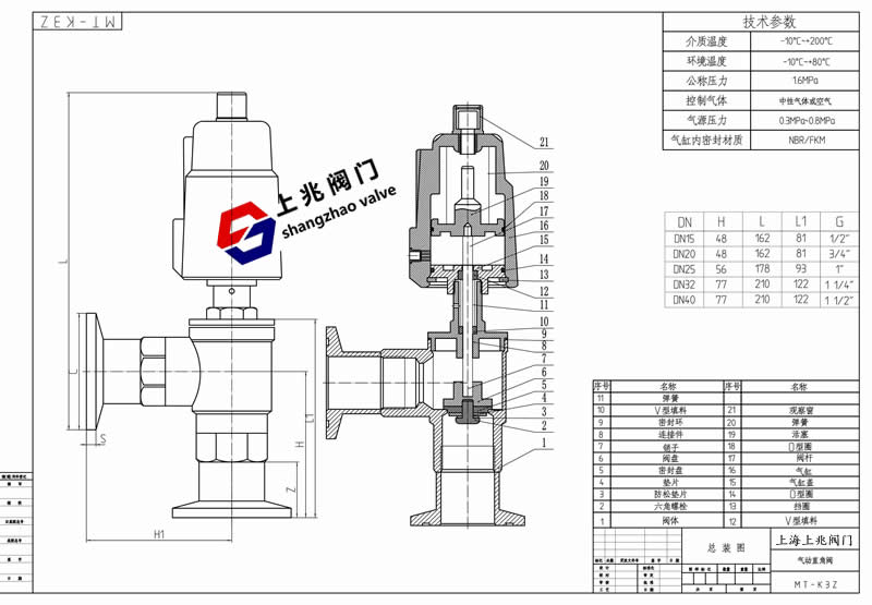 產(chǎn)品介紹 快裝氣動(dòng)直角閥--工作原理: 可調(diào)節(jié)活塞開(kāi)度,限制行程,調(diào)節(jié)閥門(mén)流量,適用于所有型號(hào)的角座閥,另外在無(wú)控制氣源、機(jī)械(電磁)故障時(shí)還可以用來(lái)緊急制動(dòng)。 閥體材料:不銹鋼SS316/SS304/黃銅 執(zhí)行器材料: SS304不銹鋼 閥盤(pán)密封:PTFE/FPM 閥桿密封:PTFE/FPM 活塞密封:FPM/NBR 快裝氣動(dòng)直角閥--技術(shù)參數(shù): 接口尺寸:DN10-DN65 螺紋:3/8‘’--21/2‘’ 適用介質(zhì):水,中性氣體和液體,酒精,油,有機(jī)溶劑,水蒸氣,弱酸弱堿溶液。 介質(zhì)溫度:PTFE:-10℃-+200℃ FPM:-10℃-+100℃ 順流安裝/逆流安裝 控制介質(zhì):空氣/中性氣體 控制壓力范圍 :0.3-0.8MPa 工作壓力:0-1.6MPa 快裝氣動(dòng)直角閥--應(yīng)用范圍: 啤酒飲料灌裝設(shè)備 制藥及醫(yī)療設(shè)備 印染紡織 化工行業(yè) 氣體工業(yè) 高溫滅菌 發(fā)泡機(jī)械 水/污水處理 ![]() | ||
