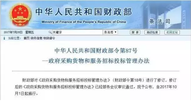 2017年10月1日起施行“最低價(jià)中標(biāo)”說再見! 近日,財(cái)政部印發(fā)財(cái)政部令87號(hào)《政府采購貨物和服務(wù)招標(biāo)投標(biāo)管理辦法》,該《辦法》提出:評(píng)標(biāo)委員會(huì)認(rèn)為投標(biāo)人的報(bào)價(jià)明顯低于其他通過符合性審查投標(biāo)人的報(bào)價(jià),有可能影響產(chǎn)品質(zhì)量或者不能誠(chéng)信履約的,應(yīng)當(dāng)要求其在評(píng)標(biāo)現(xiàn)場(chǎng)合理的時(shí)間內(nèi)提供書面說明,必要時(shí)提交相關(guān)證明材料;投標(biāo)人不能證明其報(bào)價(jià)合理性的,評(píng)標(biāo)委員會(huì)應(yīng)當(dāng)將其作為無效投標(biāo)處理。 ![]() 該《辦法》有如下幾點(diǎn),需要大家注意: 第一、該投標(biāo)價(jià)格與其他投標(biāo)人相比的價(jià)格,參照對(duì)象是“其他投標(biāo)人的價(jià)格”,此處不是大家常說的“成本價(jià)”,因?yàn)椤俺杀緝r(jià)”有時(shí)的確很難直接判定,爭(zhēng)議也很大,直接與“其他標(biāo)人的價(jià)格”相對(duì)比,易操作,例如:若九個(gè)投標(biāo)人,八個(gè)投標(biāo)人報(bào)價(jià)為1億左右,另一位若是8000萬,可能就需要進(jìn)行“合理性”解釋。 第二、價(jià)格明顯低于其他投標(biāo)人的報(bào)價(jià)情況下,有可能影響產(chǎn)品質(zhì)量或者不能誠(chéng)信履約。這里用詞是“有可能”,可以認(rèn)為若價(jià)格過低,都存在“有可能”,所以免不了要澄清。 第三、應(yīng)當(dāng)要求其在評(píng)標(biāo)現(xiàn)場(chǎng)合理的時(shí)間內(nèi)提供書面說明,必要時(shí)提交相關(guān)證明材料。這里要注意的是“評(píng)標(biāo)現(xiàn)場(chǎng)合理的時(shí)間”,這個(gè)意義重大,避免了場(chǎng)外人情,也是說“投標(biāo)”是否有效,當(dāng)場(chǎng)決定。 第四、投標(biāo)人不能證明其報(bào)價(jià)合理性的,評(píng)標(biāo)委員會(huì)應(yīng)當(dāng)將其作為無效投標(biāo)處理。這里用詞是“應(yīng)當(dāng)”,而不是“可以”,就是該《辦法》直接規(guī)定這種情況就是“無效投標(biāo)”。 目前,一些地方在招投標(biāo)中存在的“低價(jià)中標(biāo)”現(xiàn)象,導(dǎo)致在最低價(jià)中標(biāo)的競(jìng)爭(zhēng)中,呈現(xiàn)良者退出和劣者胡來的困局。這已經(jīng)成為企業(yè)提升產(chǎn)品質(zhì)量的突出障礙,亟待治理和規(guī)范。而在基建和地產(chǎn)行業(yè)。最低價(jià)中標(biāo)往往使承建商無利可圖甚至賠本吆喝,承建商的應(yīng)對(duì)手段往往是工程停建、惡意拖欠薪酬等。最低價(jià)中標(biāo)往往從單純的經(jīng)濟(jì)糾紛,發(fā)酵成社會(huì)問題。 87號(hào)令要求有可能影響產(chǎn)品質(zhì)量或者不能誠(chéng)信履約的報(bào)價(jià)提供說明或證明其合理性,勢(shì)必對(duì)最低價(jià)中標(biāo)的現(xiàn)象帶來一定遏制,“餓死同行、累死自己、坑死業(yè)主”現(xiàn)象有望得到改善! 中華人民共和國(guó)財(cái)政部令第87號(hào) ——政府采購貨物和服務(wù)招標(biāo)投標(biāo)管理辦法 財(cái)政部對(duì)《政府采購貨物和服務(wù)招標(biāo)投標(biāo)管理辦法》(財(cái)政部令第18號(hào))進(jìn)行了修訂,修訂后的《政府采購貨物和服務(wù)招標(biāo)投標(biāo)管理辦法》已經(jīng)部務(wù)會(huì)議審議通過?,F(xiàn)予公布,自2017年10月1日起施行。 部長(zhǎng) 肖捷 2017年7月11日 第一章 總 則 第一條 為了規(guī)范政府采購當(dāng)事人的采購行為,加強(qiáng)對(duì)政府采購貨物和服務(wù)招標(biāo)投標(biāo)活動(dòng)的監(jiān)督管理,維護(hù)國(guó)家利益、社會(huì)公共利益和政府采購招標(biāo)投標(biāo)活動(dòng)當(dāng)事人的合法權(quán)益,依據(jù)《中華人民共和國(guó)政府采購法》(以下簡(jiǎn)稱政府采購法)、《中華人民共和國(guó)政府采購法實(shí)施條例》(以下簡(jiǎn)稱政府采購法實(shí)施條例)和其他有關(guān)法律法規(guī)規(guī)定,制定本辦法。 第二條 本辦法適用于在中華人民共和國(guó)境內(nèi)開展政府采購貨物和服務(wù)(以下簡(jiǎn)稱貨物服務(wù))招標(biāo)投標(biāo)活動(dòng)。 第三條 貨物服務(wù)招標(biāo)分為公開招標(biāo)和邀請(qǐng)招標(biāo)。 公開招標(biāo),是指采購人依法以招標(biāo)公告的方式邀請(qǐng)非特定的供應(yīng)商參加投標(biāo)的采購方式。 邀請(qǐng)招標(biāo),是指采購人依法從符合相應(yīng)資格條件的供應(yīng)商中隨機(jī)抽取3家以上供應(yīng)商,并以投標(biāo)邀請(qǐng)書的方式邀請(qǐng)其參加投標(biāo)的采購方式。 第四條 屬于地方預(yù)算的政府采購項(xiàng)目,省、自治區(qū)、直轄市人民政府根據(jù)實(shí)際情況,可以確定分別適用于本行政區(qū)域省級(jí)、設(shè)區(qū)的市級(jí)、縣級(jí)公開招標(biāo)數(shù)額標(biāo)準(zhǔn)。 第五條 采購人應(yīng)當(dāng)在貨物服務(wù)招標(biāo)投標(biāo)活動(dòng)中落實(shí)節(jié)約能源、保護(hù)環(huán)境、扶持不發(fā)達(dá)地區(qū)和少數(shù)民族地區(qū)、促進(jìn)中小企業(yè)發(fā)展等政府采購政策。 第六條 采購人應(yīng)當(dāng)按照行政事業(yè)單位內(nèi)部控制規(guī)范要求,建立健全本單位政府采購內(nèi)部控制制度,在編制政府采購預(yù)算和實(shí
