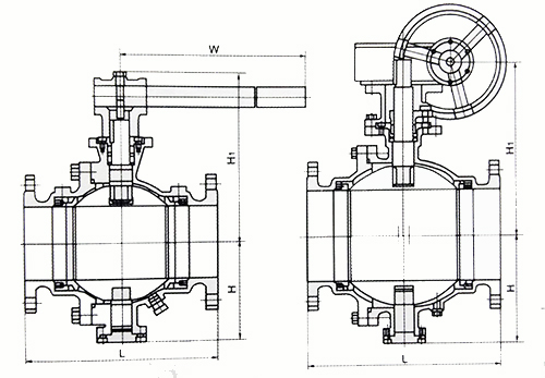產(chǎn)品介紹 一、Q347F 蝸輪固定式法蘭球閥--概述: Q347蝸輪固定式法蘭球閥,球體帶有固定軸的球閥,稱為固定球閥。固定球閥主要用于高壓大口徑。根據(jù)閥座密封圈的安裝不同,固定球閥可以有兩種結(jié)構(gòu):球體前密封的閥座,球體后密封的閥座Q347H、Q347F硬密封固定球閥廣泛用于石油、天然氣、煤炭和礦石的開采、提煉加工和管道輸送系統(tǒng)中;化工產(chǎn)品、醫(yī)藥和食品生產(chǎn)中;水電、火電和核電的電力生產(chǎn)系統(tǒng)中;城市和工業(yè)企業(yè)的給排水、供熱和供氣系統(tǒng)中。 二、Q347F 蝸輪固定式法蘭球閥--結(jié)構(gòu)簡(jiǎn)圖: